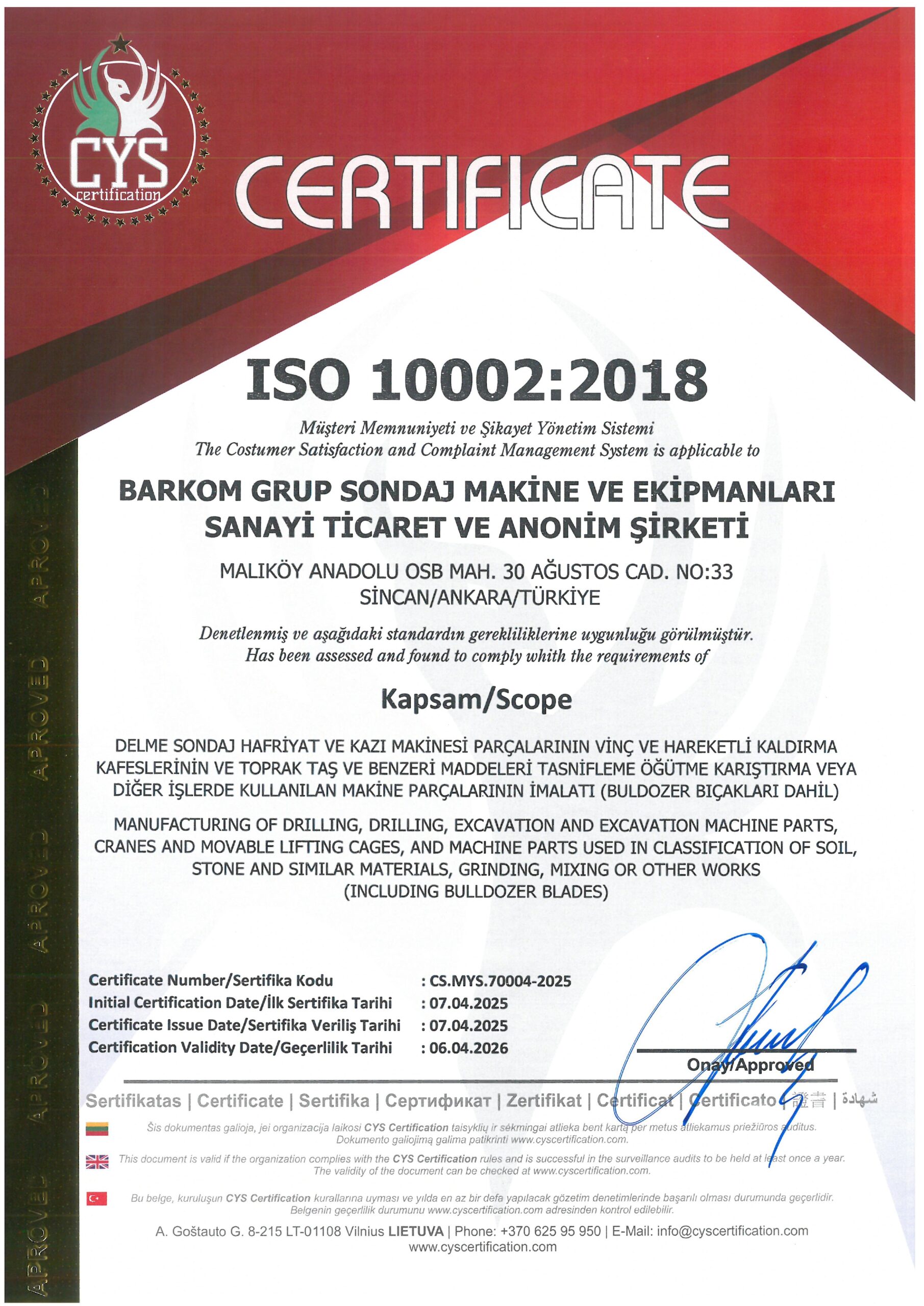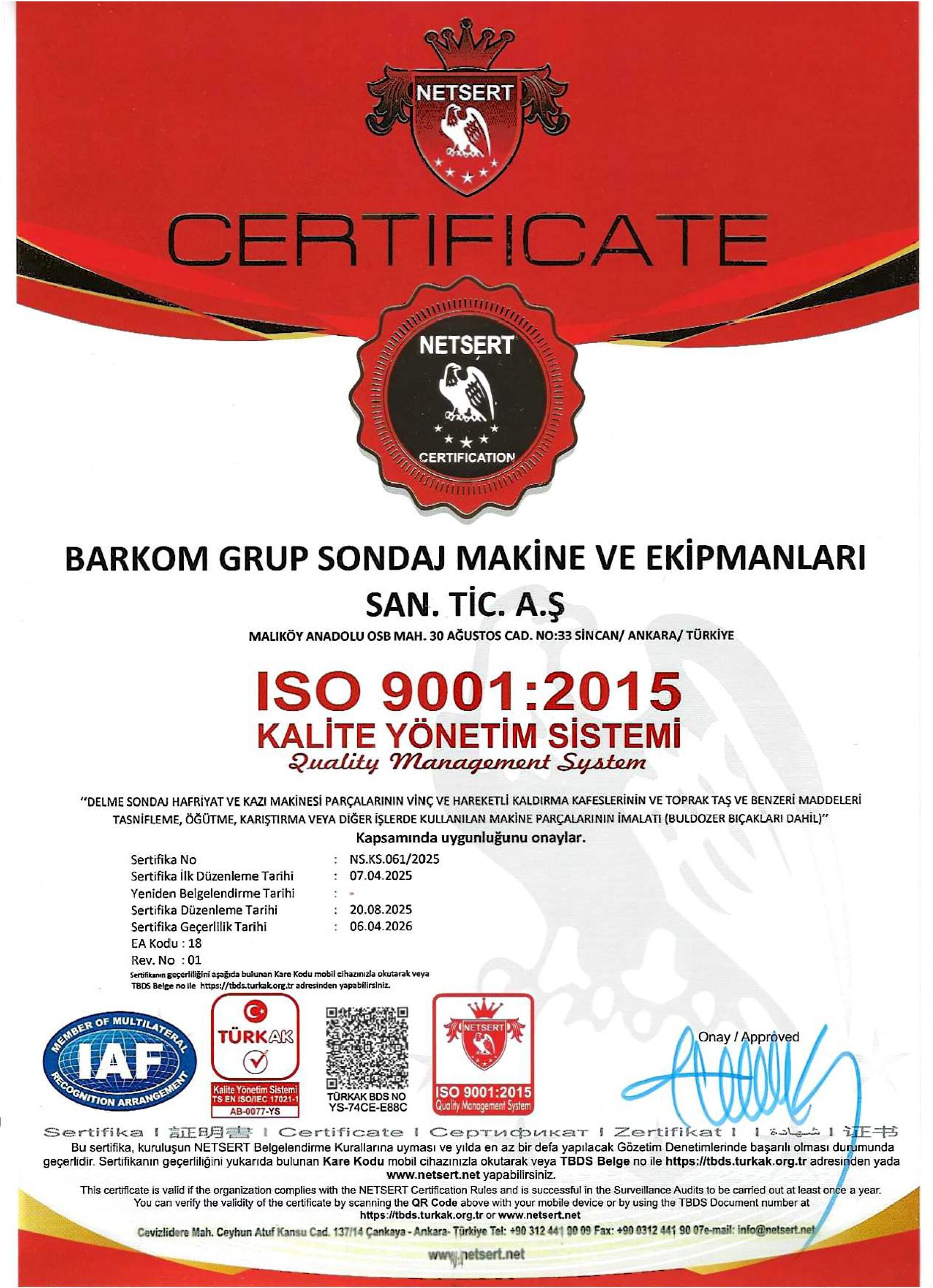 Sertifikalarımız